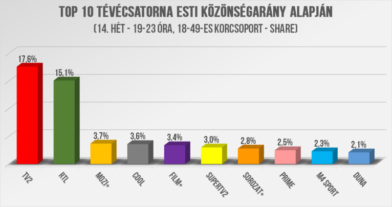 RTL: Fókusz Plusz: 417 ezer (13,9%), 18-59: 192 ezer (15,2%)