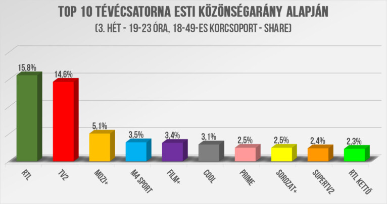 RTL: Fókusz Plusz: 459 ezer (13,6%), 18-59: 235 ezer (15,9%)