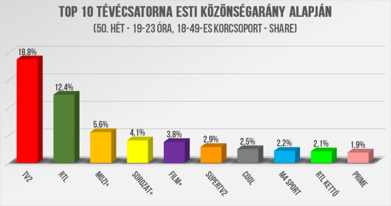 RTL: Híradó: 589 ezer (19,5%), 18-49: 154 ezer (17,9%)